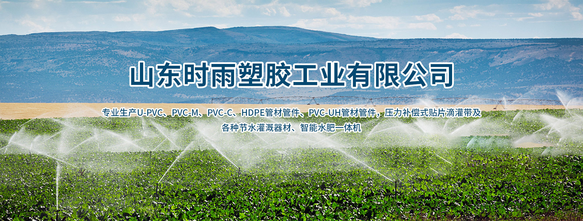 山東時雨塑膠工業(yè)有限公司主要生產(chǎn)滴灌管,滴灌帶,微噴帶,噴灌噴頭,壓力補償式貼片滴灌帶,pvc給水管材,pe給水管材管件,pvc-uh管材管件,水肥一體化,智能水肥一體化機器設(shè)備,砂石網(wǎng)式組合過濾器的專業(yè)生產(chǎn)廠家,萊蕪塑膠行業(yè)、萊蕪節(jié)水行業(yè)領(lǐng)頭企業(yè)。